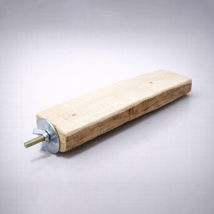 چوب نشیمن یکطرفه استوانهای، از برش قطری یک شاخه استوانهای طبیعی چوب ساخته شده و ترکیبی هوشمندانه از دو سطح متفاوت را در اختیار پرنده قرار میدهد. یک سمت این نشیمن دارای سطح صاف، پوستکنده و پرداختشده است که برای استراحت پاها ایدهآل بوده و فشار را بهصورت یکنواخت پخش میکند؛ در حالی که سمت دیگر آن، سطح نیمدایره با پوست طبیعی چوب را حفظ کرده تا حس نشستن روی شاخه واقعی در طبیعت را شبیهسازی کند.