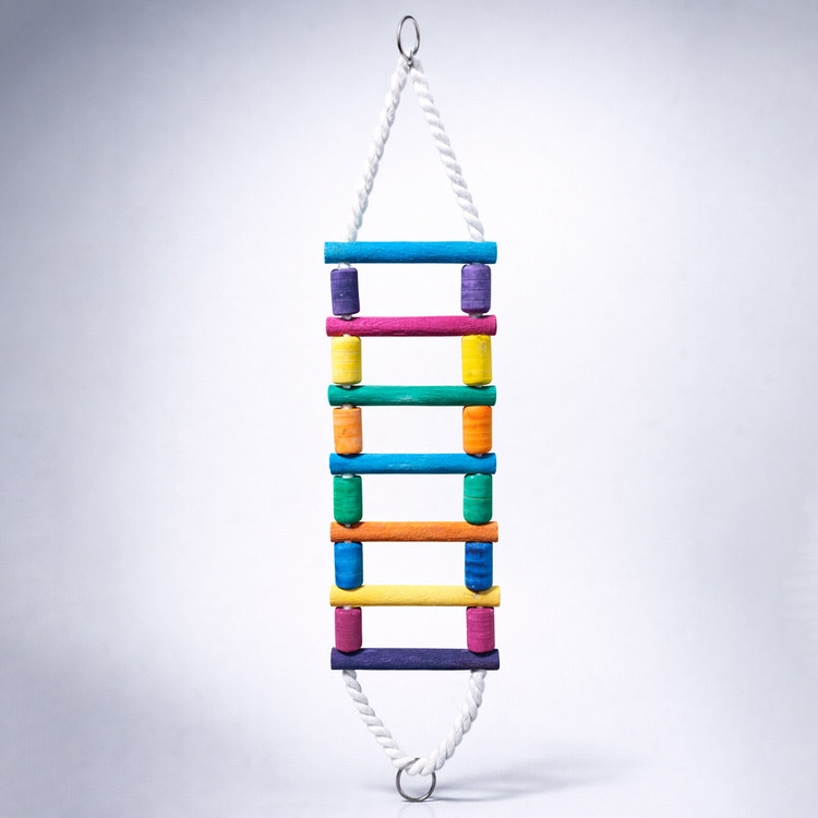 نردبان معلق چوبی، یک وسیله سرگرمی و تحرکبخش برای پرندگان زینتی است که از قطعات چوبی رنگارنگ، ایمن و سبک بههمراه طناب نرم، مقاوم و خوشدست ساخته شده است. این نردبان بهصورت پل معلق طراحی شده و دو سر آن با استفاده از گیرههای فلزی محکم بهراحتی از دو سوی قفس آویزان میشود.